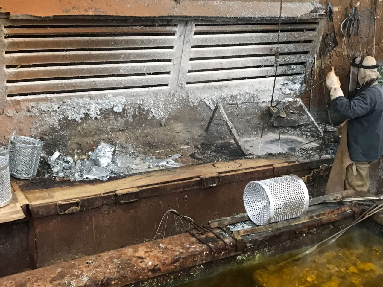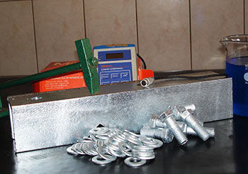 • Prevenir contra respingos de zinco, na área ao redor da cuba de galvanização, durante a imersão da peça no zinco fundido, fato que acontece quando há umidade.